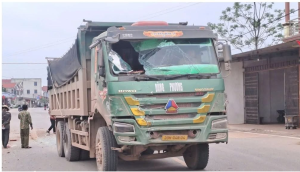 Xe ben chở đất đam vào xe đưa đón học sinh ở Thái Nguyên