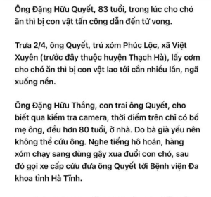HÀ TĨNH: Chú chó becgie xích bị xổng ra cắn ông chủ nhà 83 tuổi đứt cổ họng,đứt tai